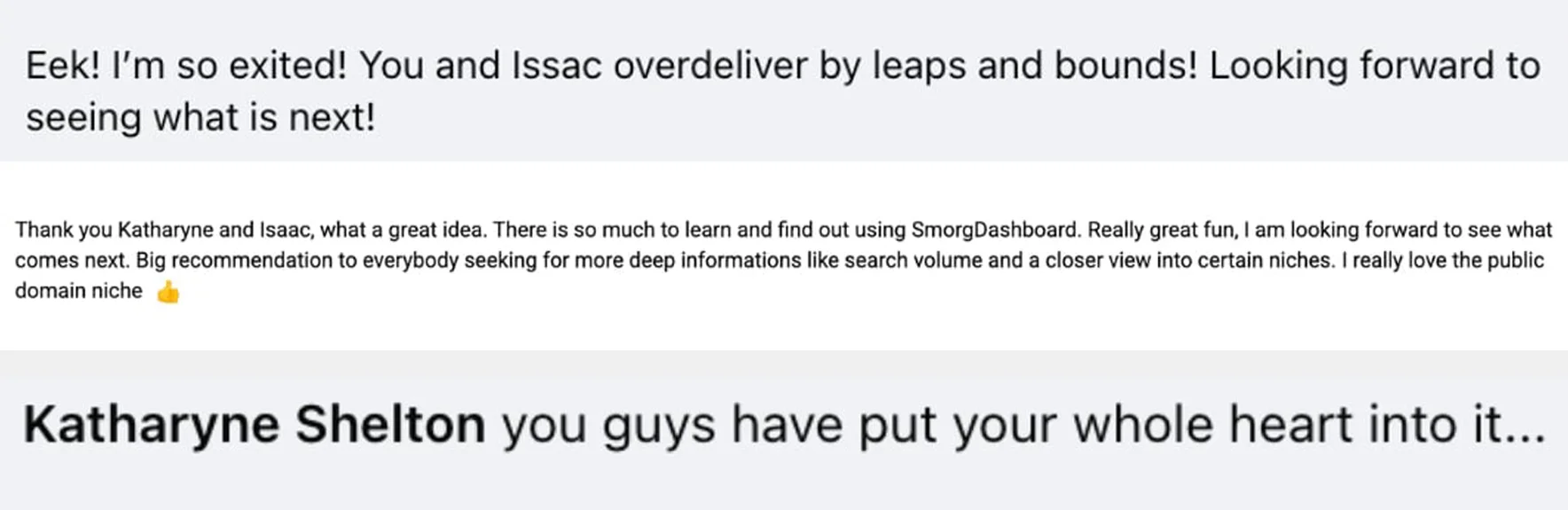 Our vision for Smorg was to create 21 collections (or ‘days’) of research. Our plan was to release a small data set each day, but it grew bigger and faster than we could imagine as we started adding additional data and tools. Many of the tools are worth the price of admission alone, with hundreds or even thousands of niche profiles and suggestions.