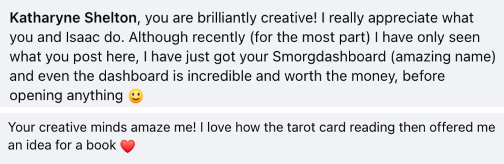 Katharyne and Isaac (with a little help from their Newfie dog, Zippy) are the co-creators of Tangent Templates, the premier tool for KDP book design, as well as a wealth of products and classes for creators including the enormous megacourses, Origins and Imagine. They love to mix business and technology with their own special blend of creativity, art and FUN! We invite you to join Smorg and be a part of the magic 💕